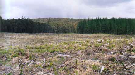 Latest News on Wombat Forest Community Forest Management Even up to the recent past native forests were cleared for plantations. The Wombat Forest is one of many areas that had native forest replaced with plantation. Plantations are commonly made up of exotic monocultures such as Pinus Radiata. This link shows some areas and issues with such plantations. Native forests are logged in 80 year cycles while plantations are logged in relatively short 10-20 year rotations. This clearfelling initially results in increased sedimentary run-off but is then followed by reduced water yield during regrowth. In this way plantations have potentially four times the effect in terms of negative impacts over the same period. Another drawback of plantations is that they perpetually exclude native species.