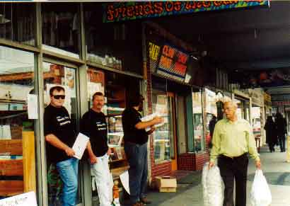 These blokes were members of the Construction Forestry, Mining and Energy Union. Not long after the union orchestrated this blockade action at FoE they lost their jobs. It had nothing to do with conservation issues, it was due to the nature of international trade in forest products and the indifference of their multi-national employer.