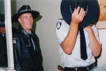 The long arm of the law arrives at an occupation. Don't be shy boys