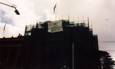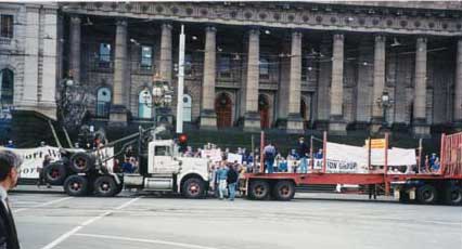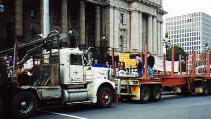 Loggers and greens converge on the Victorian Parliament.
