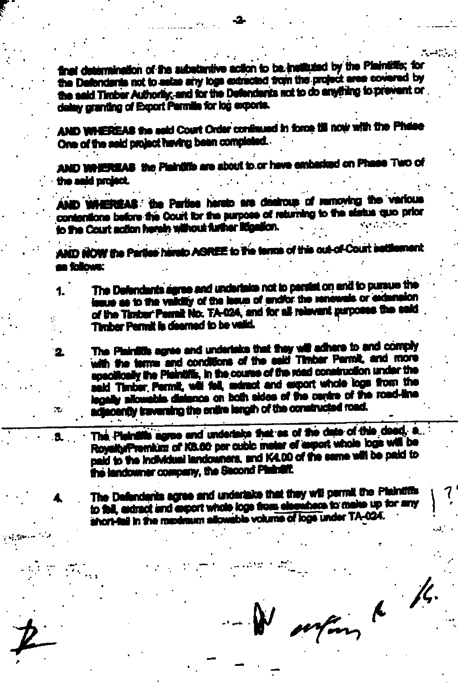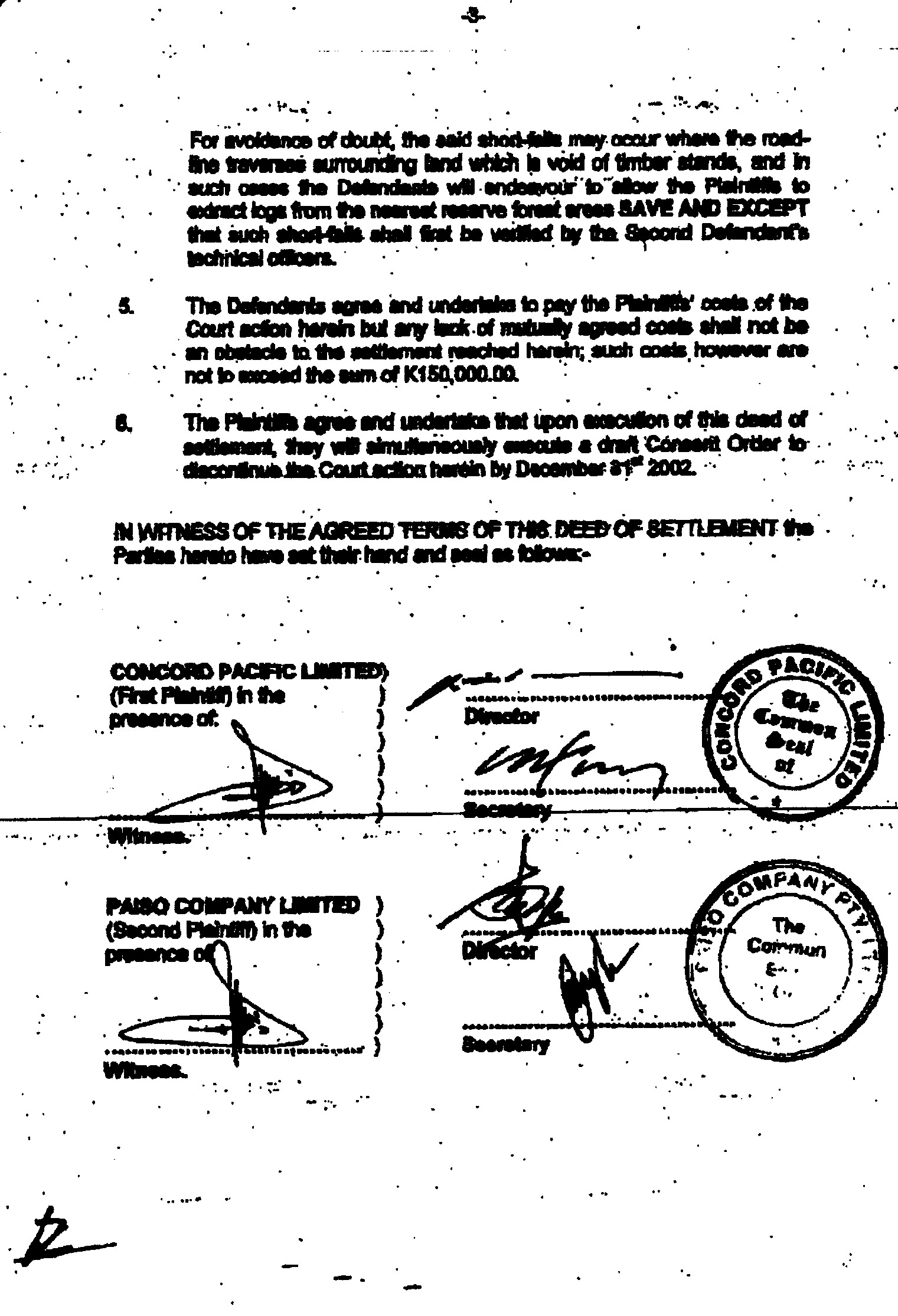 This agreement was signed without the consent of the resource owners and with no regard for the US$50 million worth of logs that have already been stolen by Concord Pacific from the forests of Western Province and the continued suffering of the local people.