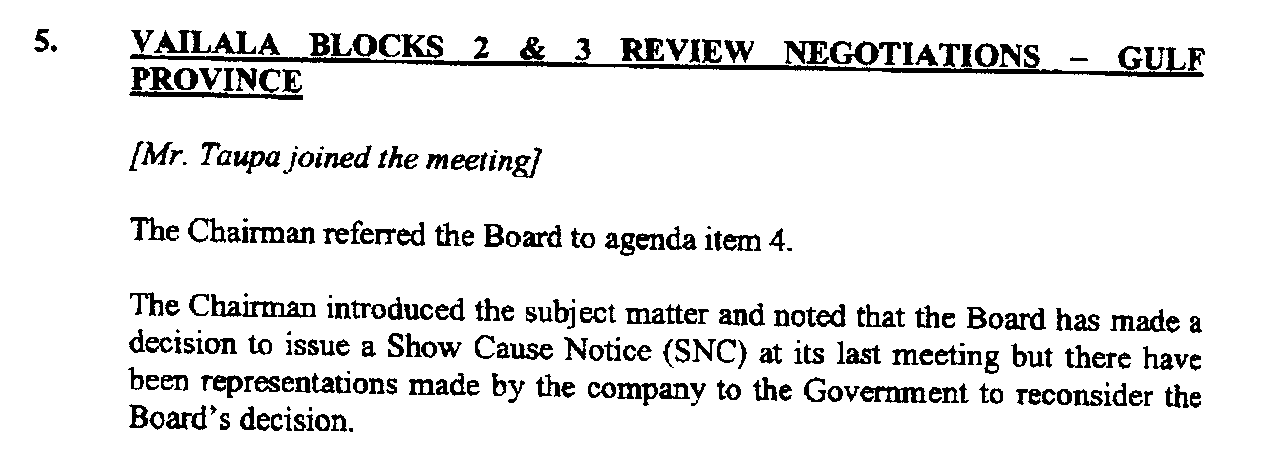Of course Rimbunan Hijau’s representative in the meeting Stanis Bai did not vote for the resolution, but without the more aggressive Bob Tate or Dick McCarthy there to bully the Board, honesty and truth were able to rule the day.